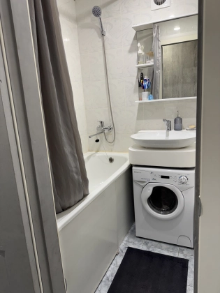 Квартира укомплектована мебелью: кухонный гарнитур, варочная поверхность, вытяжка, холодильник, диван ,комод, большой встроенный шкаф -купе,  кондиционер, стиральная машина. Вся мебель и техника в хорошем состоянии!