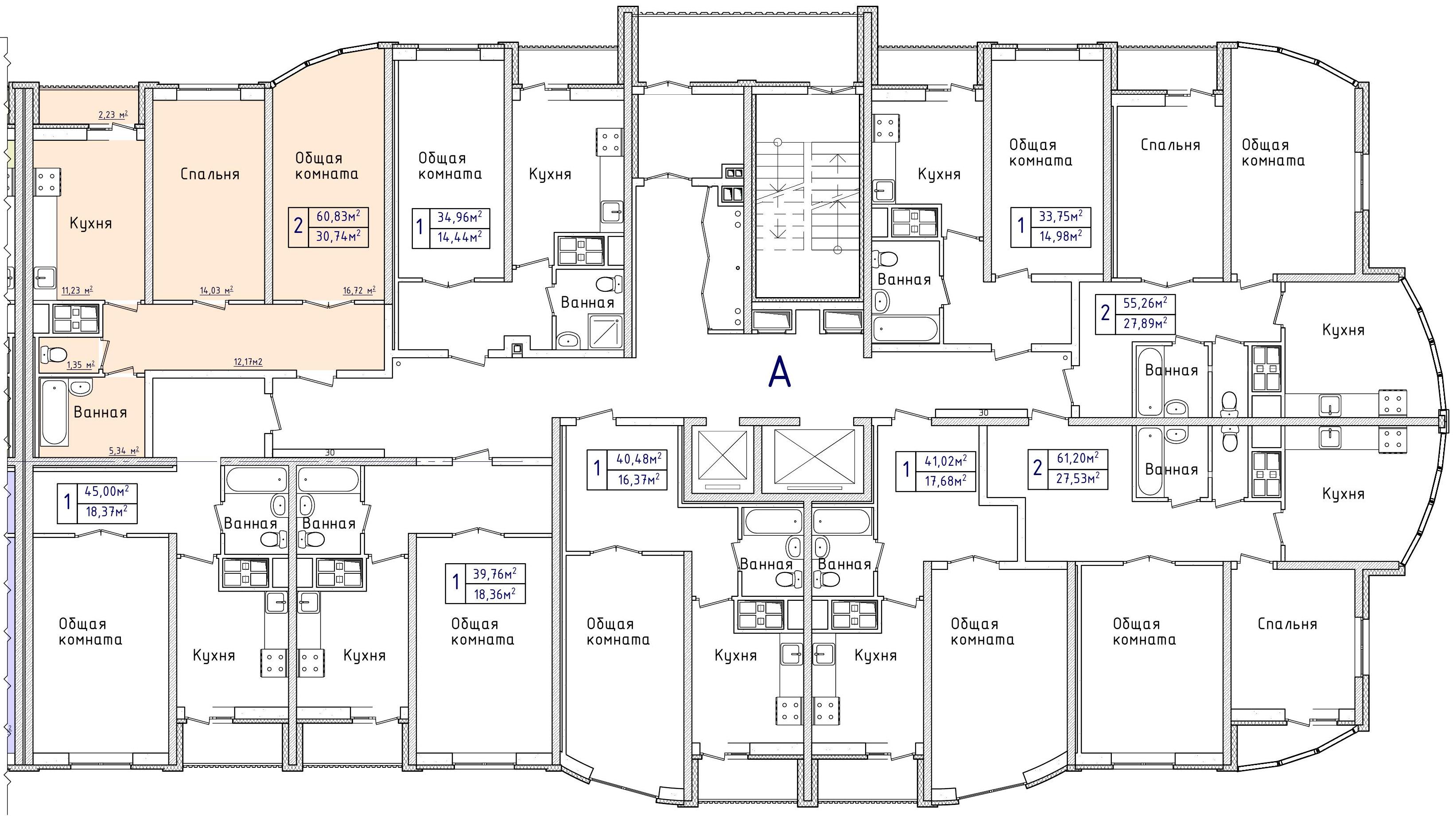 - Общая площадь: 60,8 кв.м
