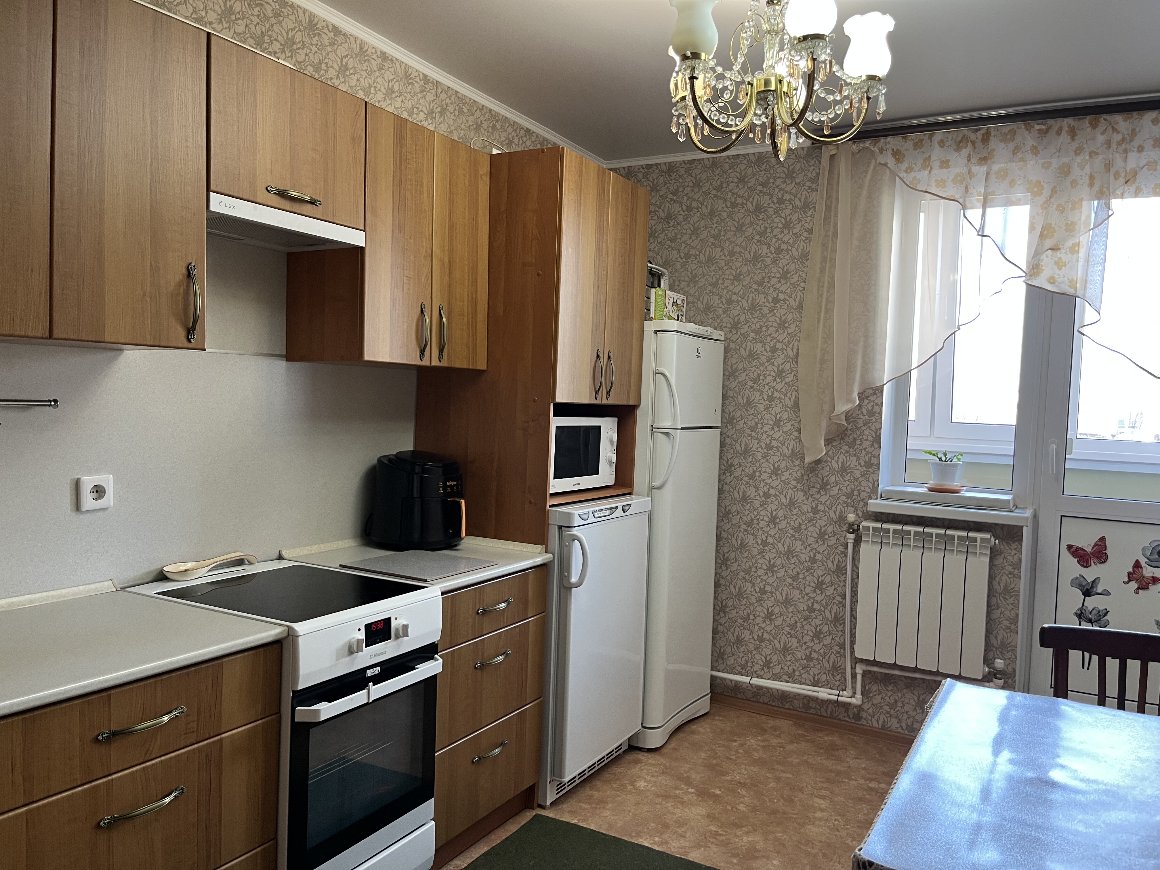 При продаже остается кухонный гарнитур, большой шкаф в коридоре, водонагреватель.