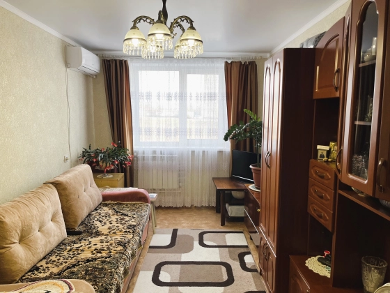 Ремонт косметический, натяжные потолки, в ванной и с/у кафель, на случай отключения воды установлен водонагреватель. Имеется достаточно вместительная кладовка из которой при необходимости можно сделать гардеробную.
